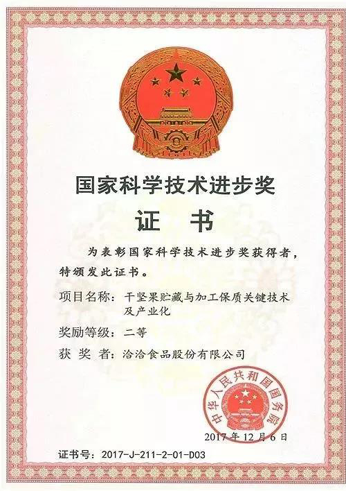 近年來,洽洽堅果為順應中國堅果炒貨行業,在新形勢下可持續發展的需求,不斷在研發、制造和銷售以及產品服務等領域注入新的動力。例如洽洽“中國干堅果貯藏與加工保質關鍵技術及產業化”項目獲得了由國務院頒發的“中國國家科學技術進步二等獎”,贏得了權威關注和業內的一致好評。